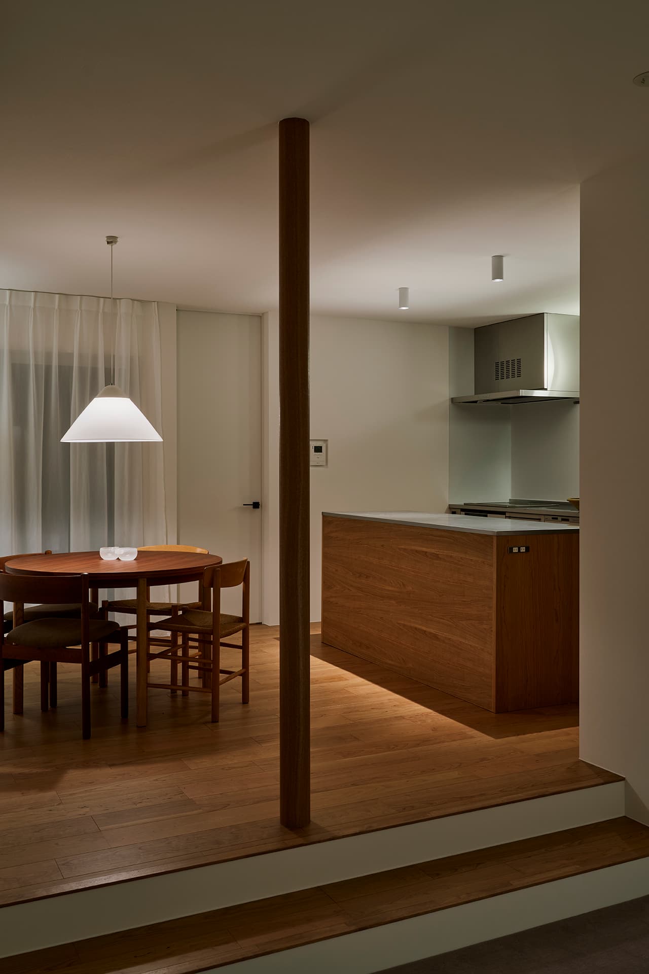 ゲスト空間とプライベート空間を思い切って階で分離。1階は店舗のように余白を楽しむ空間に。